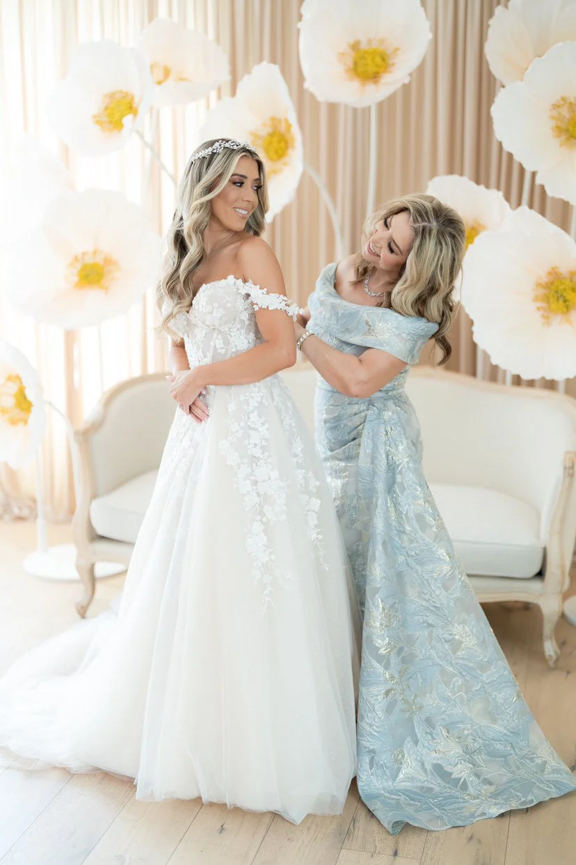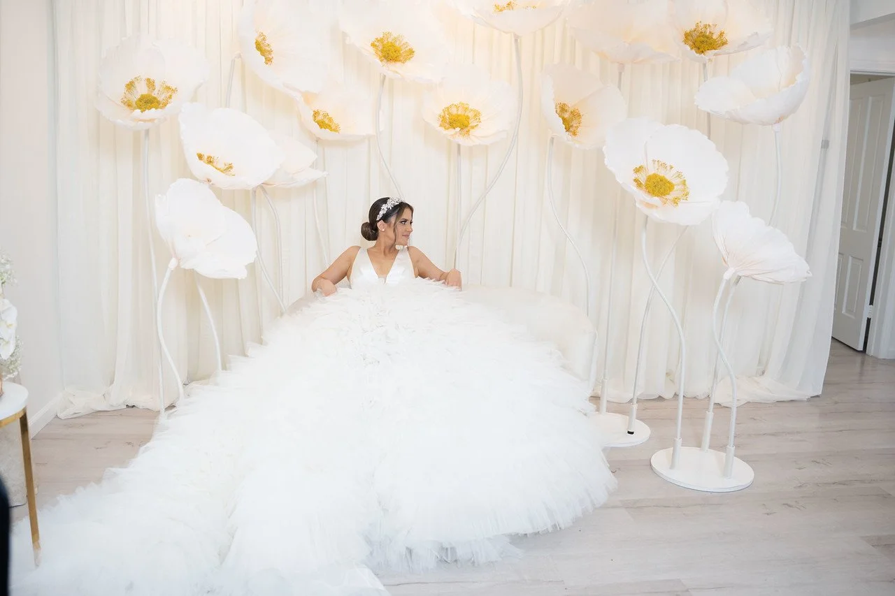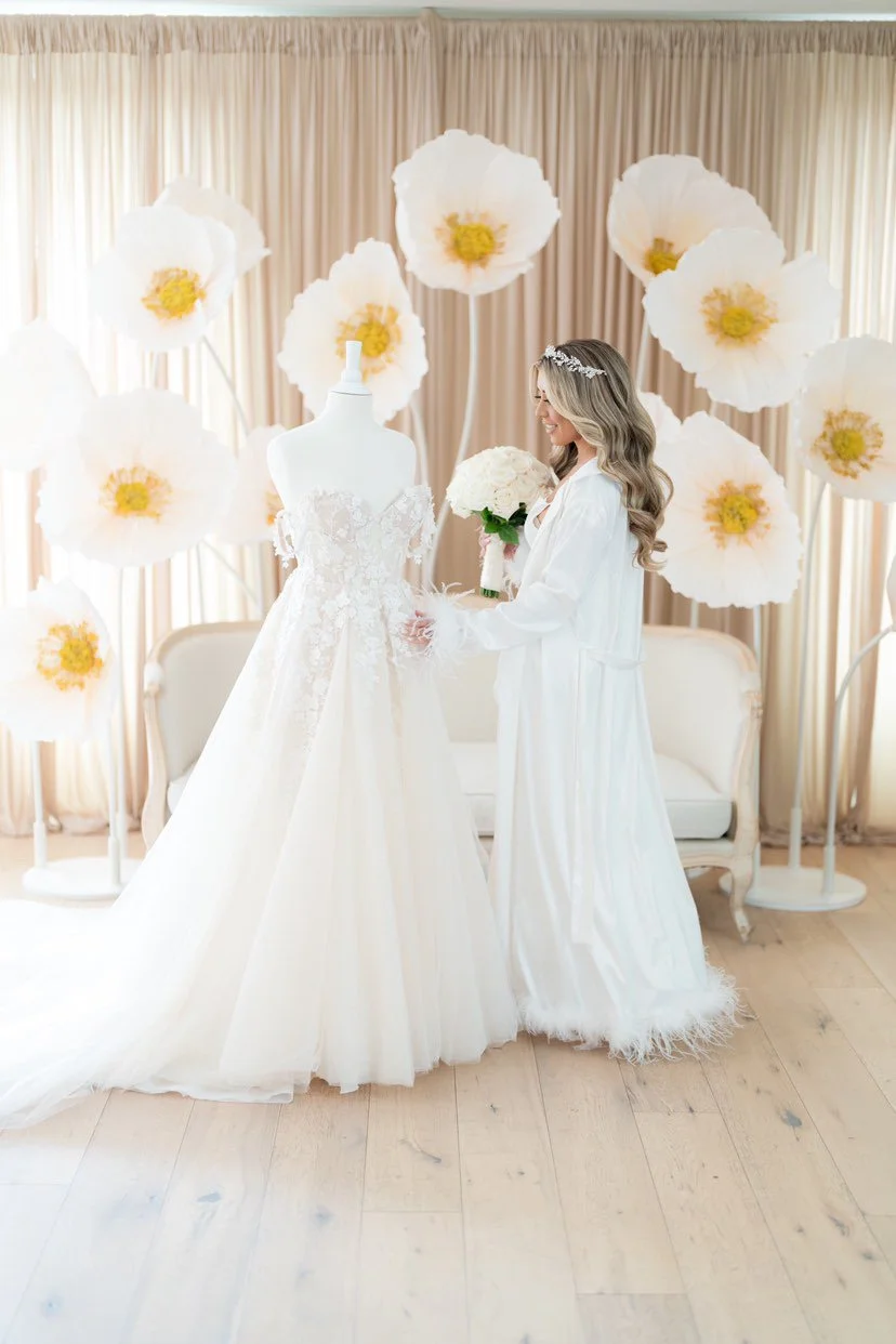 Whimsical blush poppies are the perfect backdrop for your morning bridal set-up.Our bridal home packages begin at $1,500+Please fill in this form and we’ll be in touch with you soon!