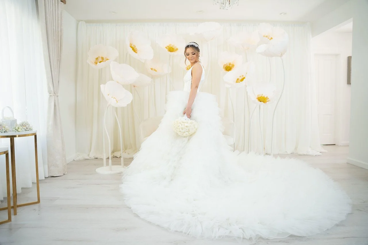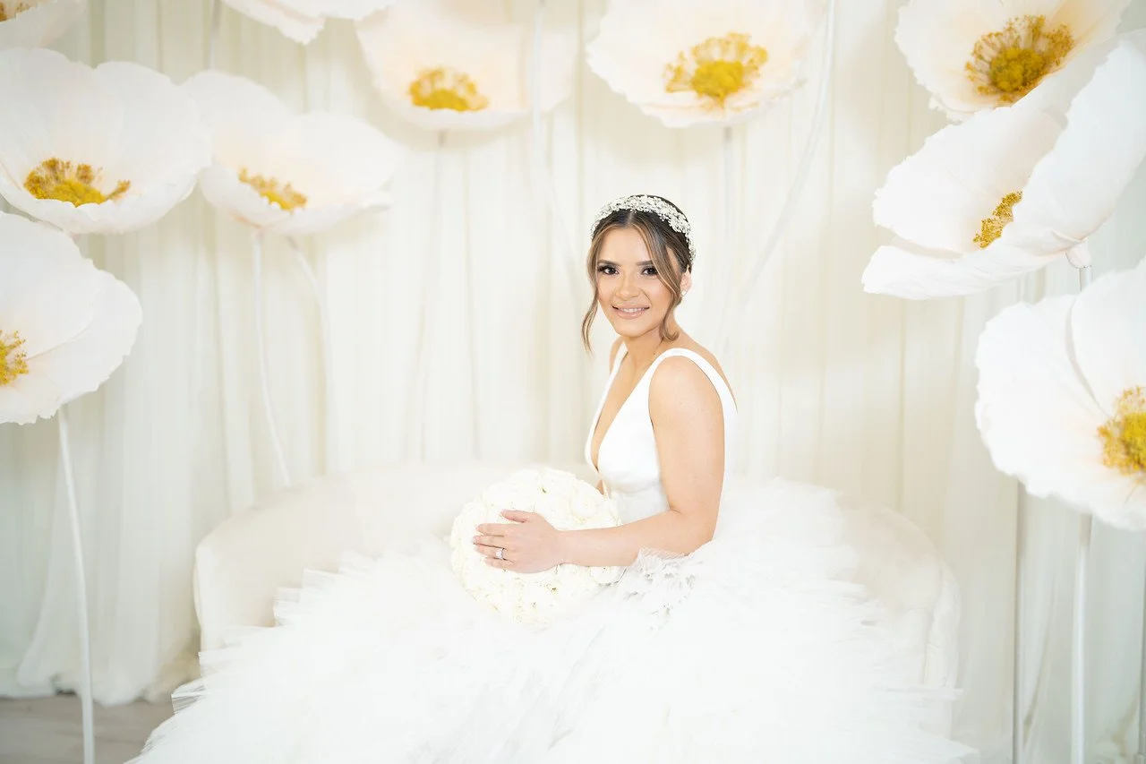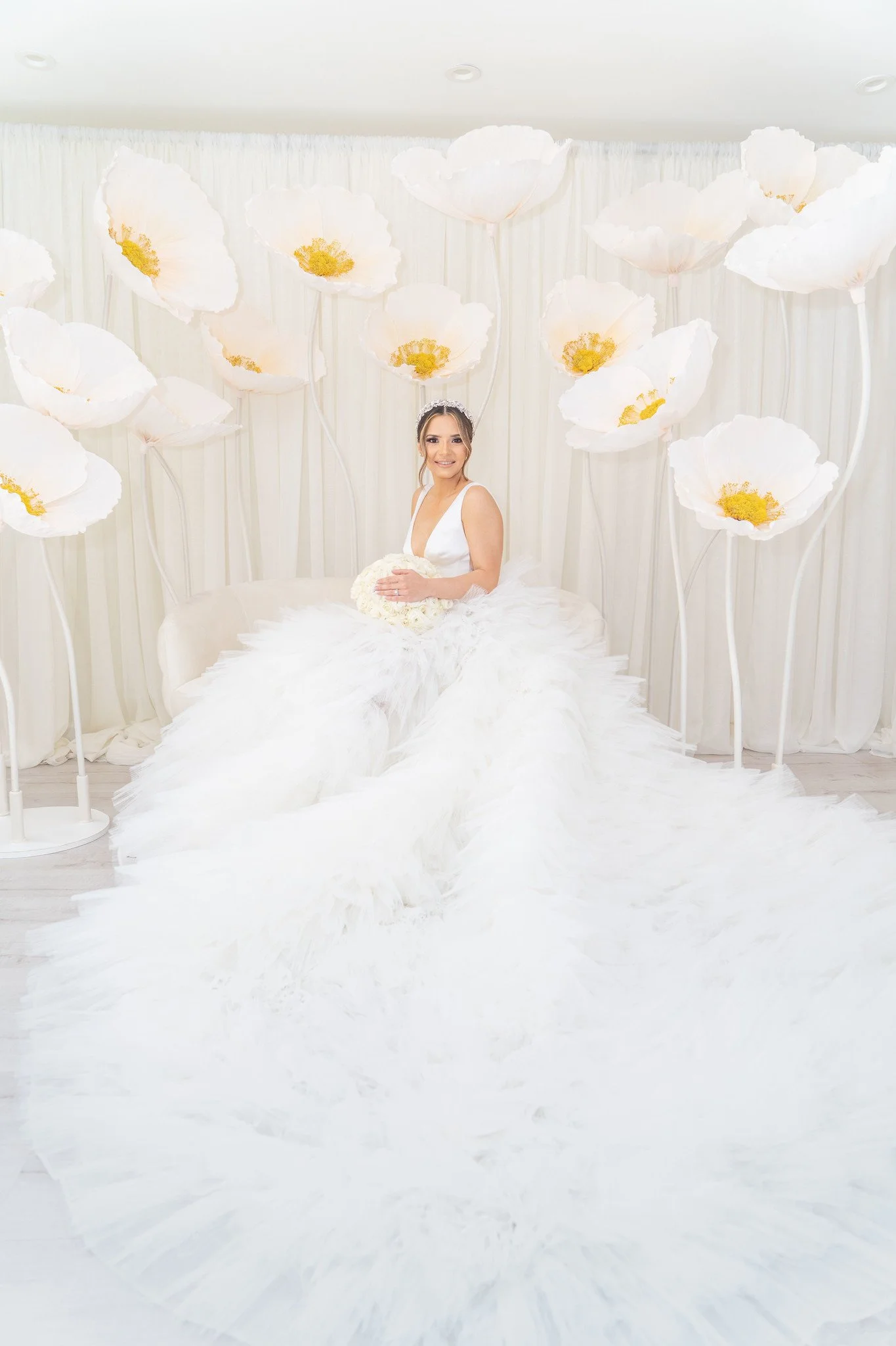 Whimsical blush poppies are the perfect backdrop for your morning bridal set-up.Our bridal home packages begin at $1,500+Please fill in this form and we’ll be in touch with you soon!